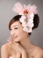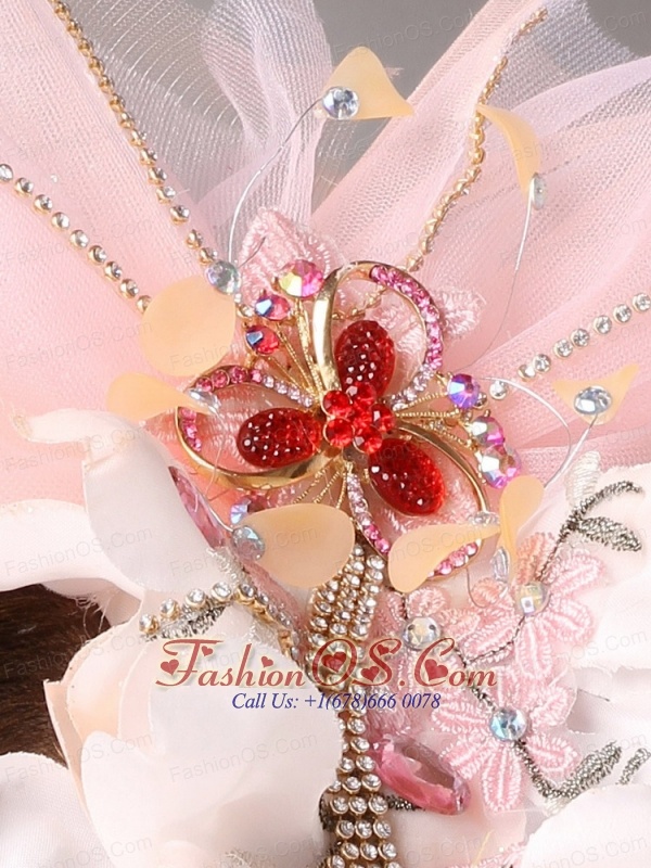 Baby Pink Tulle and Organza Beaded and Flowers Decorate Baby Pink Headpieces