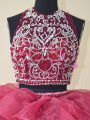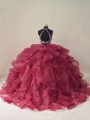 Backless Quince Ball Gowns Burgundy for Sweet 16 and Quinceanera with Beading and Ruffles Brush Train