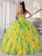 Ball Gown Appliques and Ruffles Organza Long Sweet 16 Dresses