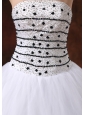 Whip yourself into show-stopping shape by donning this dreamy strapless A-line gown! It's gorgeously beaded bodice has a close-fitting design. The symmetrical beaded black lines make this dress amazing.Layers of soft, whisper-thin material flare beautifully to the floor. Lace up back. You will be the most beautiful bride under the spotlight!