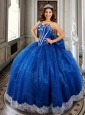 Ball Gown Beaded Royal Blue Sweet 16 Dress with Appliques and Bowknot