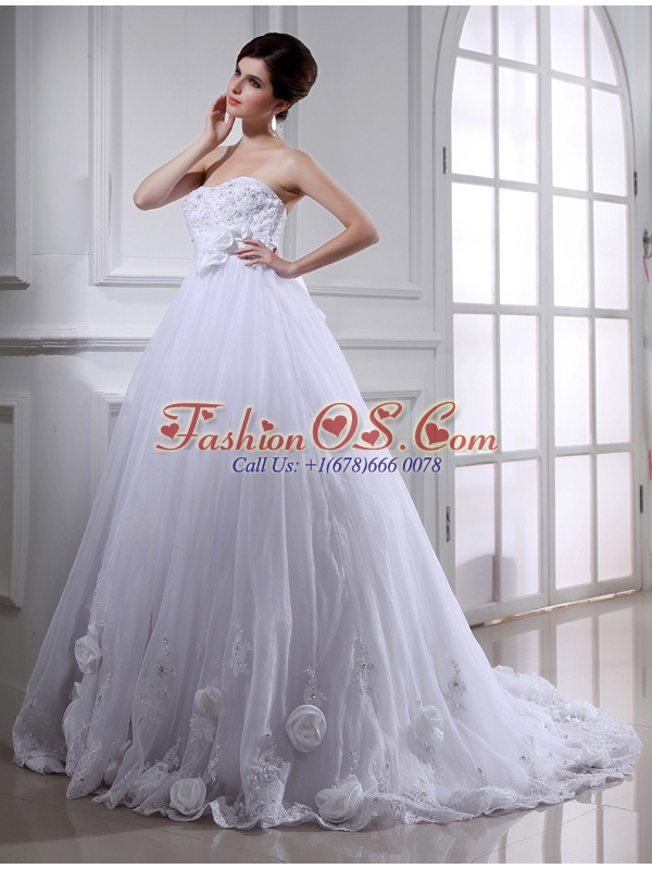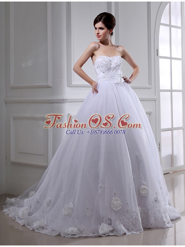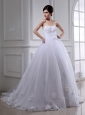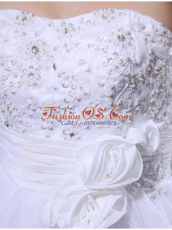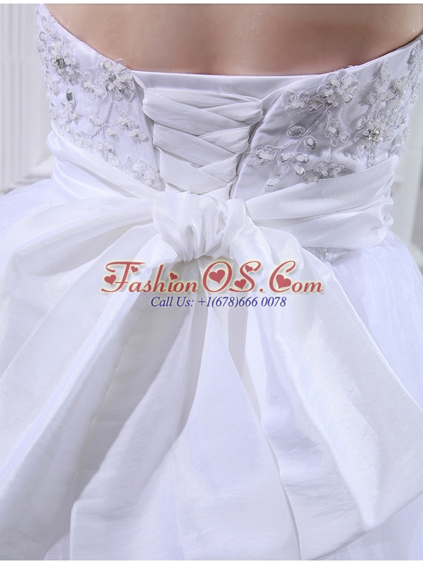 Ball Gown Strapless Appliques and Sequins Wedding Dress in White