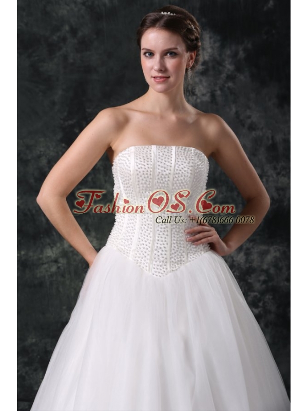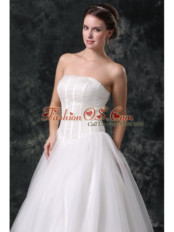 Ball Gown Strapless Beading Tulle Wedding Dress with Floor-length