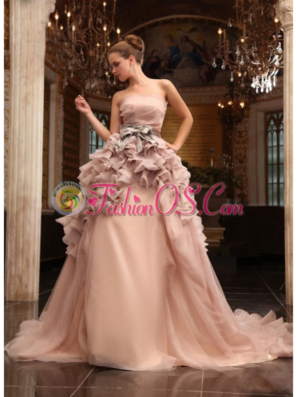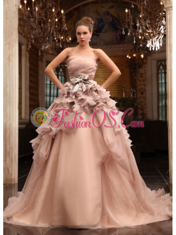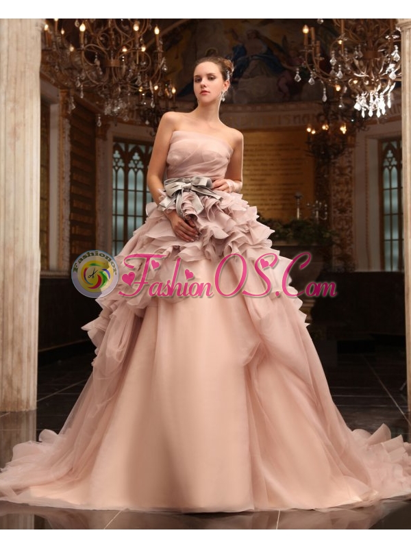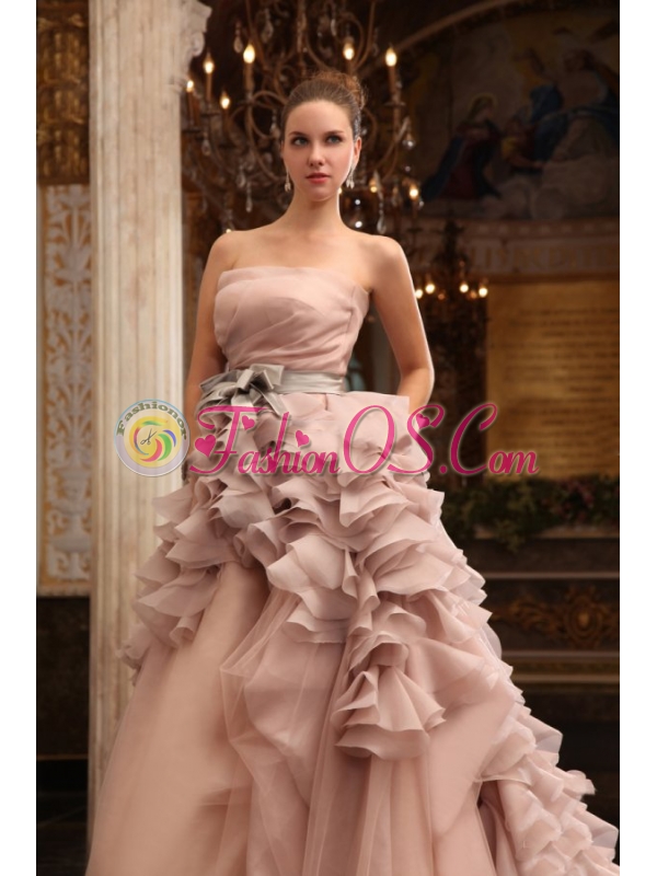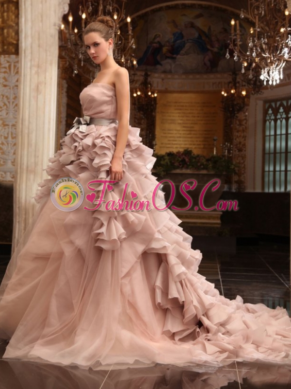 Home >  Wedding Dresses >  Perfect Wedding Dresses > Ball Gown Strapless Champagne Ruffles Organza Wedding Dress with Court Train