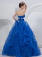 Home >  Quinceanera Dresses >  Cute Quinceanera Dresses > Ball Gown Strapless Floor-length Quinceanera Dress Royal Blue Organza Beading and Hand Made Flowers