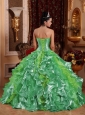 Ball Gown Strapless Green Ruffles Embroidery 15 Quinceanera Dresses