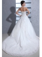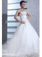 Ball Gown Strapless Lace Appliques Wedding Dress with Chapel Train