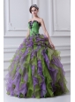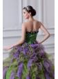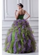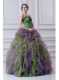 Ball Gown Strapless Multi-color Quinceanera Dress with Ruffles and Appliques