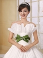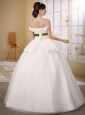 Ball Gown Strapless Neckline Organza With Olive Green Belt Wedding Dress