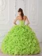 Ball Gown Strapless Organza Yellow Green Popular Quinceanera Dresses with Beading