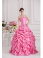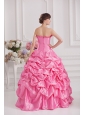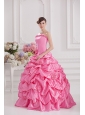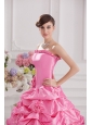 Ball Gown Strapless Pick-ups Rose Pink Quinceanera Dress with Hand Made Flowers