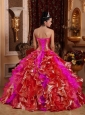 Ball Gown Strapless Ruffles and Beading Embroidery Red Sweet 16 Dresses