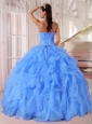 Home >  Quinceanera Dresses >  Puffy Quinceanera Dresses > Ball Gown Strapless Ruffles and Beading Floor-length Organza Beading Blue Puffy Quinceanera Dresses