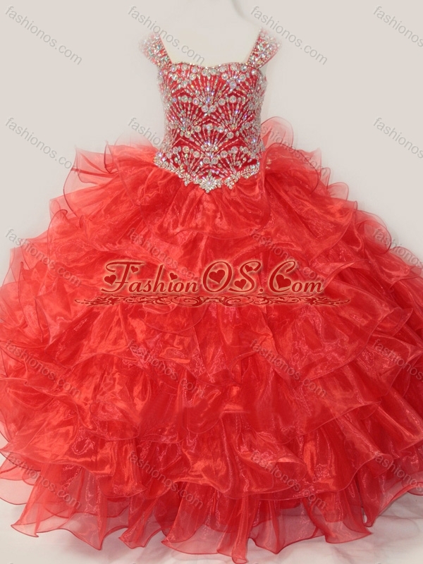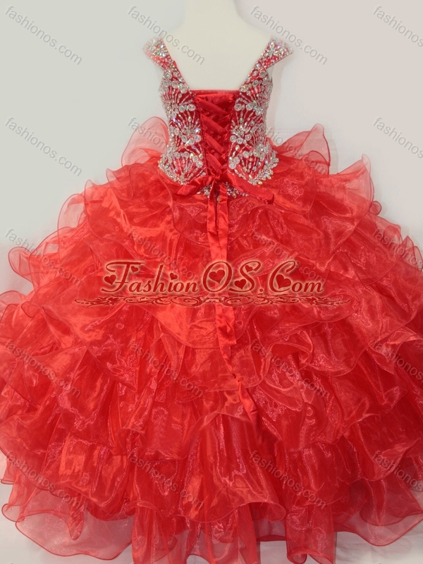 Ball Gown Straps Organza Beaded Bodice Lace Up Little Girl Pageant Dress in Red