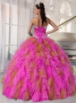 Ball Gown Sweetheart Appliques and Riffles with-flower Multi-color Pretty Quinceanera Dresses