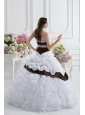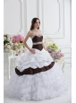 Ball Gown Sweetheart Beading Ruffled Layers Brown and White Quinceanera Dress