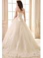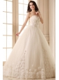 Ball Gown Sweetheart Hand Made Flowers Sweep Train Wedding Dress