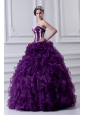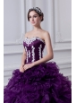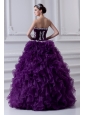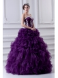 Ball Gown Sweetheart Ruffles and Appliques Purple Quinceanera Dress