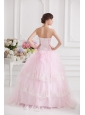 Ball Gown Sweetheart Tulle Baby Pink 2014 Quinceanera Dress with Appliques Beading