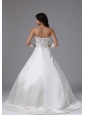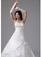 All eyes will be on you if you choose this wedding dress! This new designed dress is made of high quality satin which make it wonderful and gorgeous. The big skirts are balanced with tiny, form-fitting bodice that highlights the bust and a feminine defined waist bring a dramatic effect. This kind of wedding dress features sweetheart neckline. The embroidery material decorates on the dress to flatter its vintage style. Ball gown silhouette with train cascades to floor and sweeping. Wear it, the bride looks beautiful no matter which angles people look her!