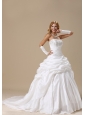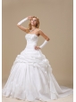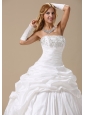 Ball Gown Wedding Dress With Appliques Decorate Bust and Ruched Pick-ups