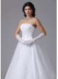 Dramatic and magnificent! This gorgeous white wedding dress will leave you a longlasting wonderful memory for sure! The floor-length skirt is straight and smooth–which is perfect for showing off your curves without adding excess bulk.A zipper up back completes it's look.The tulle fabric add the smooth and sassy look to the dress.
