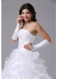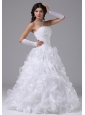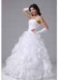 If you're looking for a special style wedding gown, this one is yours! It features a lovely ruched bodice with a sweetheart neckline. Flower-shaped ruffles on the romantic skirt make the beauty of the dress vivid.Corset closure can outline your slim figure especially your charming waist. Simple but fashion design is suitable at wedding.