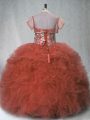 Ball Gowns 15th Birthday Dress Rust Red Sweetheart Tulle Sleeveless Floor Length Lace Up
