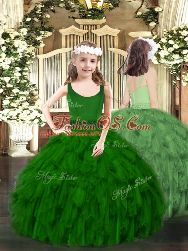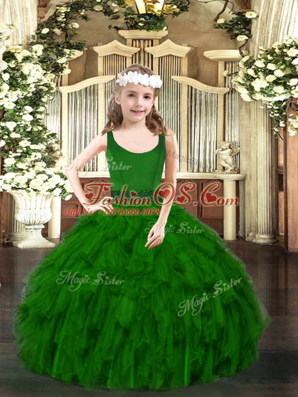 Ball Gowns Child Pageant Dress Dark Green Scoop Organza Sleeveless Floor Length Zipper