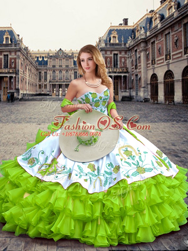 Ball Gowns Embroidery and Ruffled Layers Quinceanera Dresses Lace Up Organza Sleeveless Floor Length