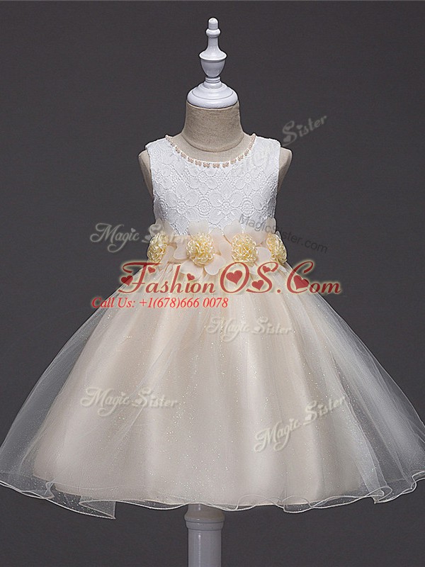 Ball Gowns Girls Pageant Dresses Champagne Scoop Tulle Sleeveless Knee Length Zipper