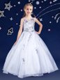 Ball Gowns Kids Pageant Dress White Scoop Organza Sleeveless Floor Length Zipper