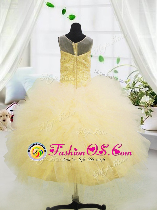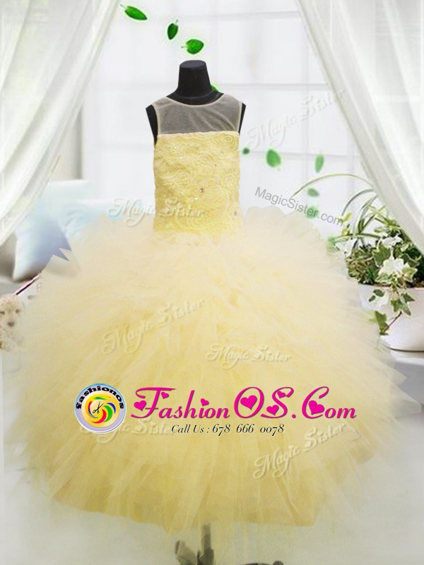 Ball Gowns Little Girl Pageant Dress Light Yellow Scoop Tulle Sleeveless Floor Length Zipper