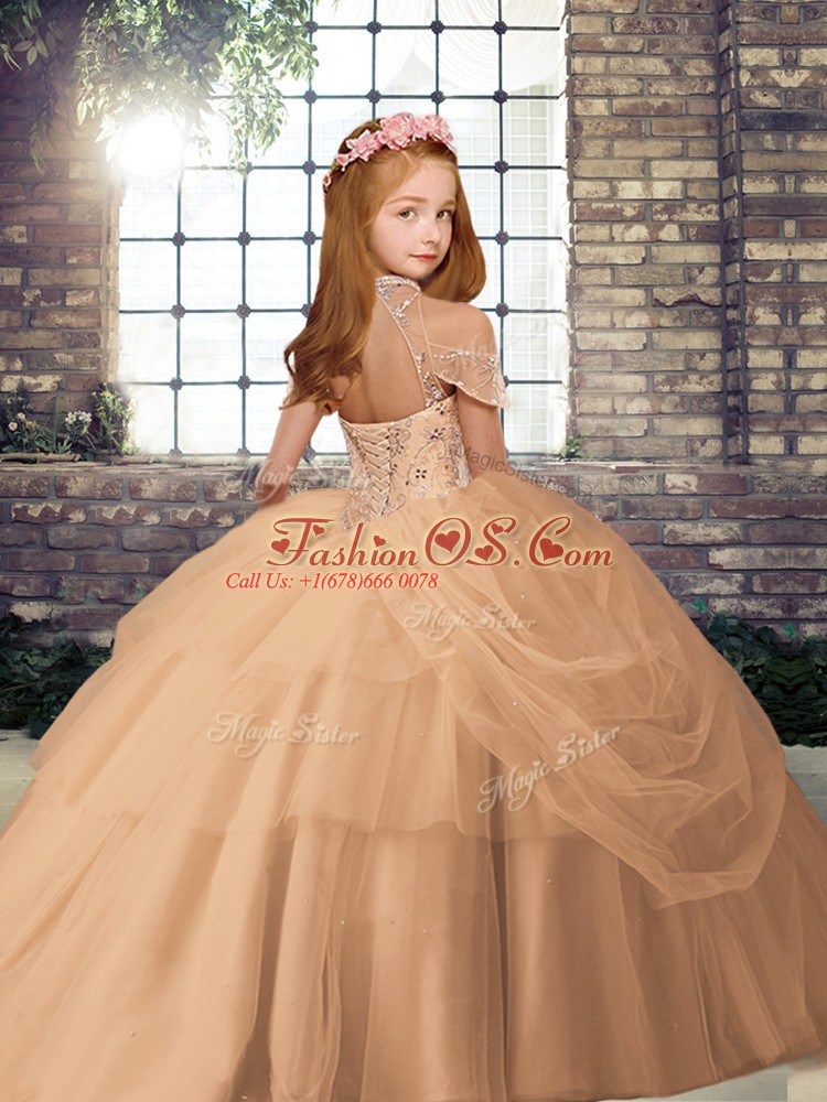 Home >  Special Occasion Dresses >  Pretty Little Girl Pageant Dresses > Ball Gowns Little Girl Pageant Gowns Green Halter Top Tulle Sleeveless Floor Length Lace Up