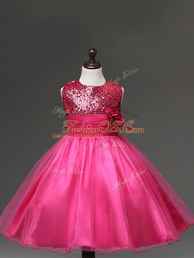 Home >  Special Occasion Dresses >  New Style Little Girl Pageant Dresses > Ball Gowns Little Girls Pageant Dress Hot Pink Scoop Tulle Sleeveless Knee Length Zipper