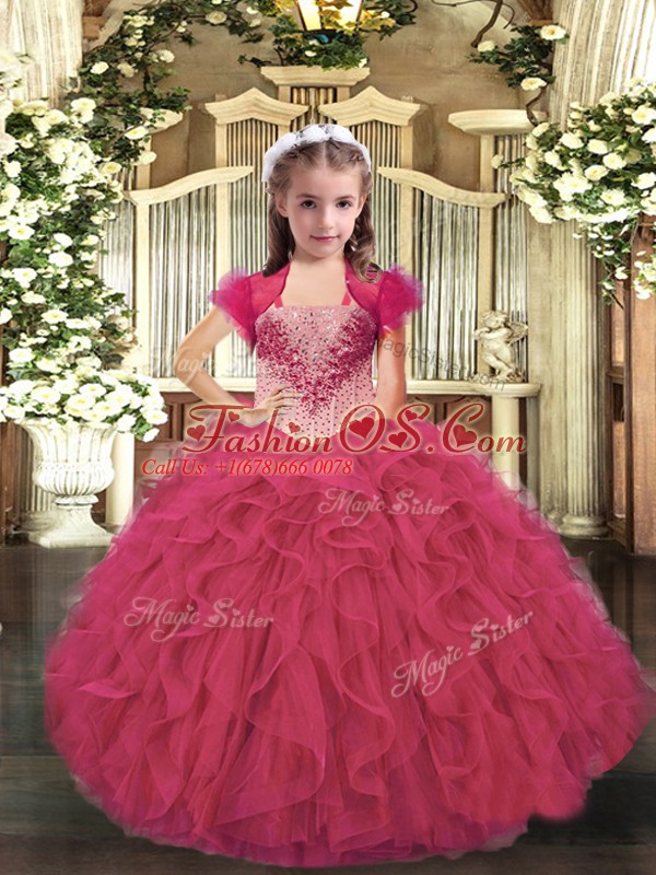 Ball Gowns Little Girls Pageant Gowns Hot Pink Straps Organza Sleeveless Floor Length Lace Up