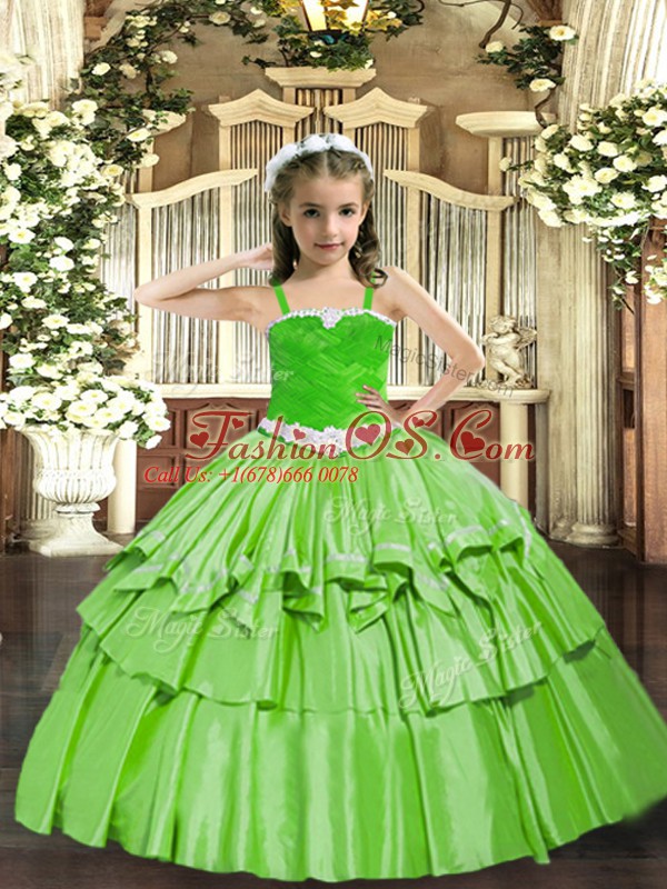 Ball Gowns Organza Straps Sleeveless Appliques and Ruffled Layers Floor Length Lace Up Little Girls Pageant Dress Wholesale