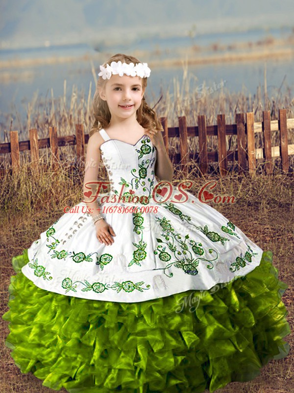 Home >  Special Occasion Dresses >  Beautiful Kids Pageant Dresses > Ball Gowns Pageant Dress for Womens Olive Green Straps Organza Sleeveless Floor Length Lace Up