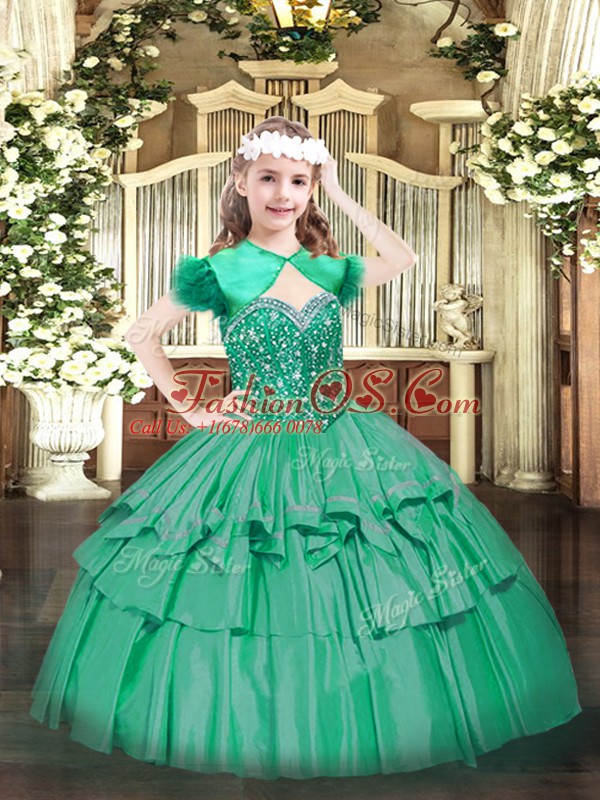 Home >  Special Occasion Dresses >  Beautiful Kids Pageant Dresses > Ball Gowns Pageant Dress for Womens Turquoise Straps Organza Sleeveless Floor Length Lace Up