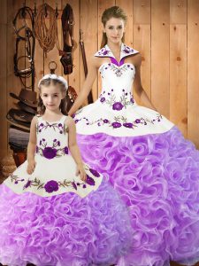 Ball Gowns Quinceanera Dress Lilac Halter Top Satin and Fabric With Rolling Flowers Sleeveless Floor Length Lace Up