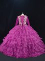 Ball Gowns Quinceanera Dress Purple V-neck Organza Long Sleeves Floor Length Lace Up
