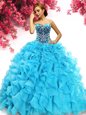 Ball Gowns Quinceanera Dresses Aqua Blue Sweetheart Organza Sleeveless Floor Length Lace Up