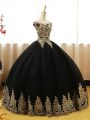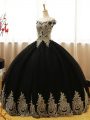 Ball Gowns Quinceanera Dresses Black Off The Shoulder Tulle Sleeveless Floor Length Lace Up