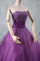 Ball Gowns Quinceanera Gown Eggplant Purple and Purple Strapless Tulle Sleeveless Floor Length Lace Up