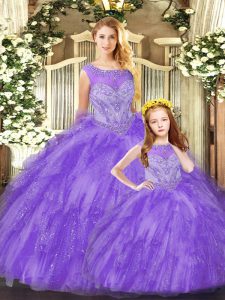 Ball Gowns Quinceanera Gown Eggplant Purple Scoop Organza Sleeveless Floor Length Lace Up