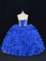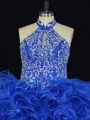 Ball Gowns Quinceanera Gown Royal Blue Halter Top Organza Sleeveless Floor Length Lace Up
