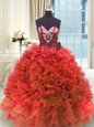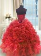 Ball Gowns Quinceanera Gown Wine Red Sweetheart Organza Sleeveless Floor Length Lace Up