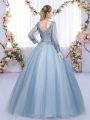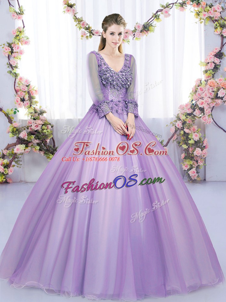 Ball Gowns Quinceanera Gowns Lavender V-neck Tulle Long Sleeves Floor Length Zipper