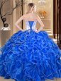 Ball Gowns Quinceanera Gowns Teal Strapless Organza Sleeveless Floor Length Lace Up