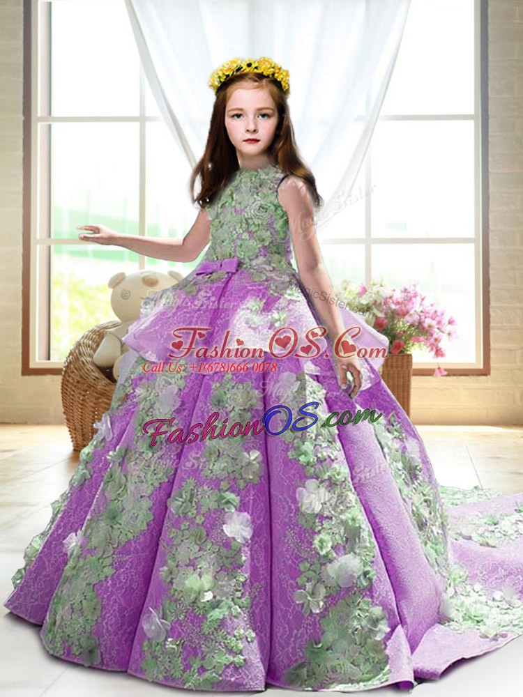 Ball Gowns Sleeveless Lilac Kids Formal Wear Court Train Backless